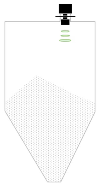 یک سطح‌سنج غیرتماسی مبتنی بر فناوری رادار FMCW. امواج مایکروویو پیوسته با مدولاسیون فرکانس از سنسور ارسال می‌شوند و فاصله با تجزیه و تحلیل اختلاف فرکانس بین سیگنال ارسالی و سیگنال منعکس شده از سطح ماده تعیین می‌شود.