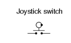 یک سوئیچ جویاستیک توسط یک اهرم که آزاد است در بیش از یک محور حرکتی حرکت کند، فعال میشود. یک یا چند مکانیزم تماس سوئیچ بسته به اینکه اهرم به کدام سمت و گاهی اوقات تا چه اندازه فشار داده شود، فعال میشوند. علامت دایره و نقطه روی نماد سوئیچ، جهت حرکت اهرم جویاستیک مورد نیاز برای فعال کردن تماس را نشان میدهد. سوئیچهای دستی جویاستیک معمولاً برای کنترل جرثقیل و ربات استفاده میشوند.