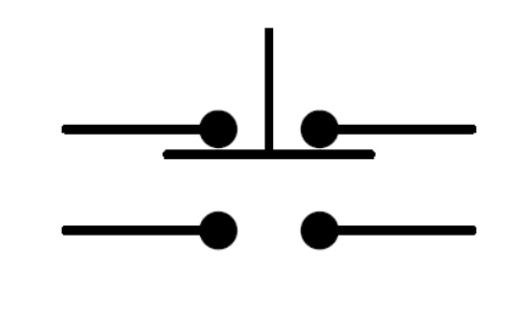 نماد شماتیک این نوع کلید بسیار شبیه نمونه واقعی است، به این صورت که کنتاکت معمولاً بسته در بالا و کنتاکت معمولاً باز در زیر قرار دارد: