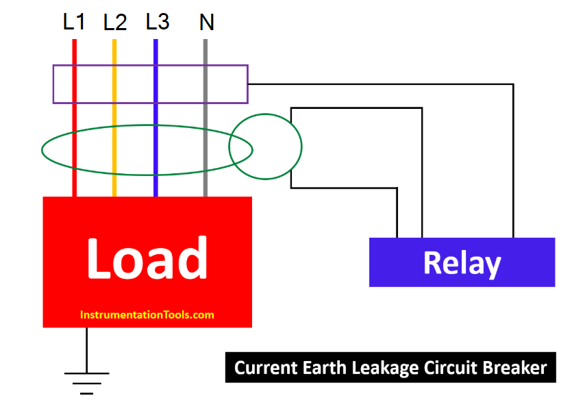 یک رله در مدار قطع کننده مدار (CB) استفاده میشود . یک سر منبع تغذیه رله به بدنه فلزی بار که قرار است جریان از آن عبور کند، متصل است.